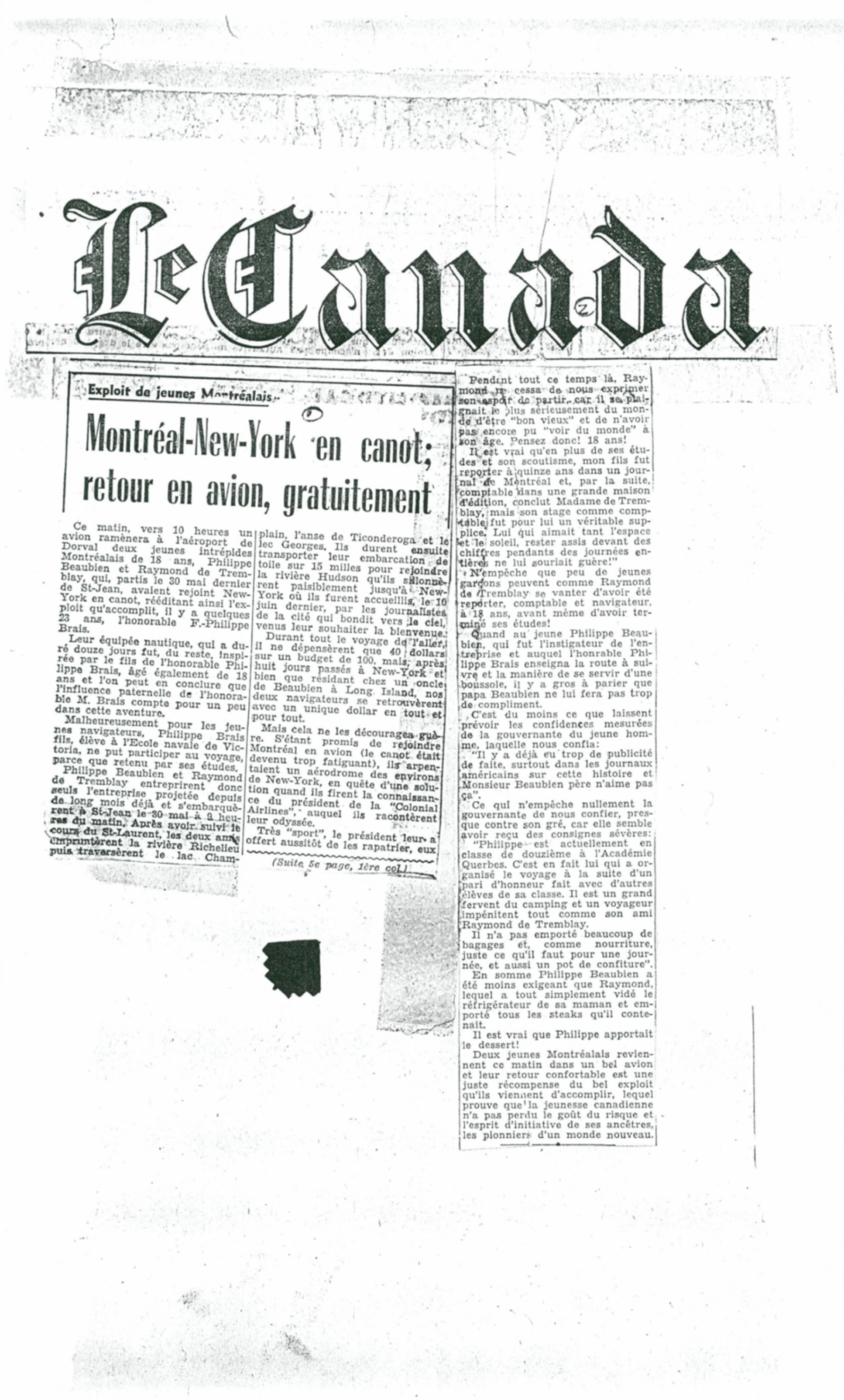 À 18 ans, inspiré par le courage et la ténacité de ses ancêtres, il effectue un voyage en canot jusqu’à New York. Parti de Montréal, il traverse le lac Champlain et le lac George. Plus de 600 km en 12 jours!